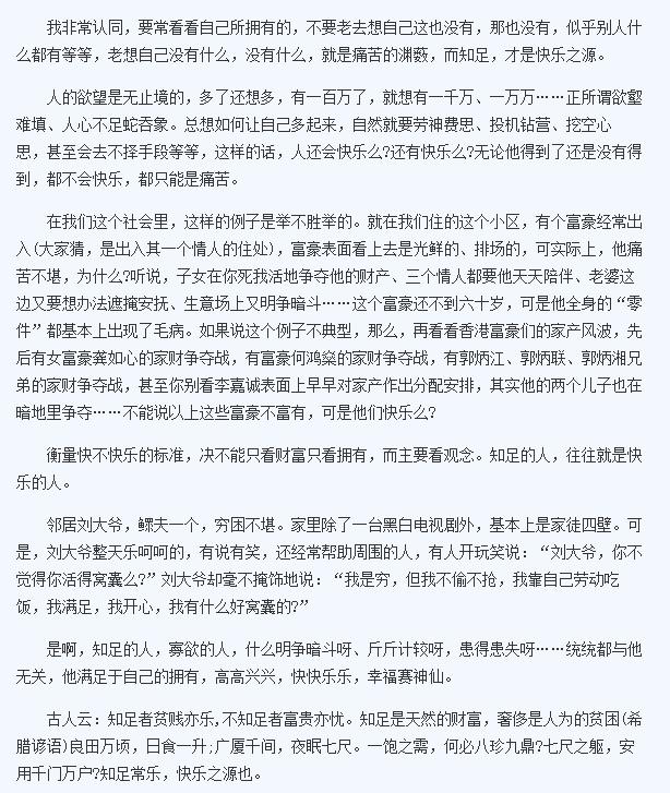 知足,快乐之源 |